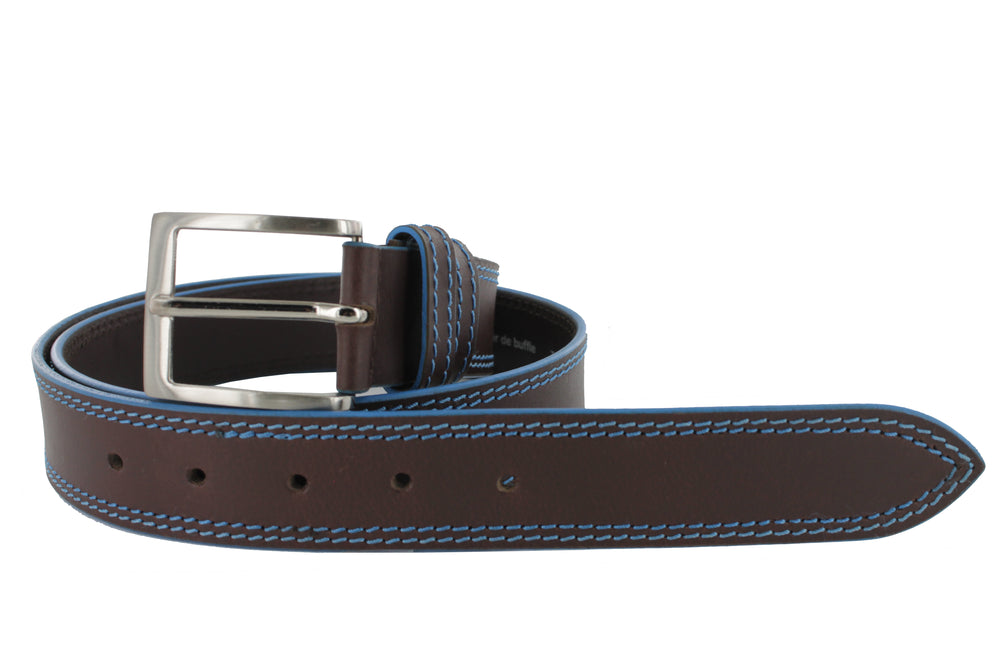 Discover a selection of belts from our collection of men's products and accessories on the official Cotton Park website. These belts are also available in our store in Paris. We offer all year round classic leather belts with pin buckle or reversible leather belts with full buckle. For comfort we offer beautiful elastic and leather belts made in France. The prestige collection offers very beautiful braided leather belts. The standard width of 3.5cm corresponds to a magnificent belt for men dressed in a suit or in Chino pants.