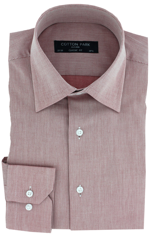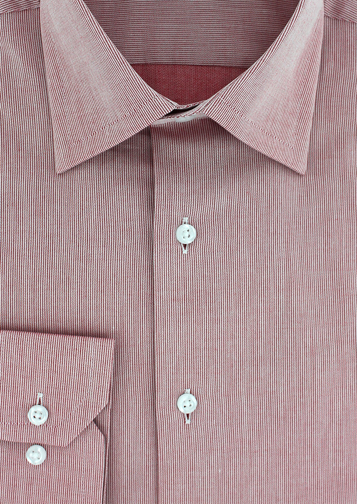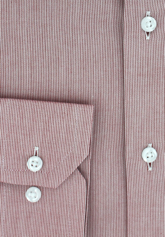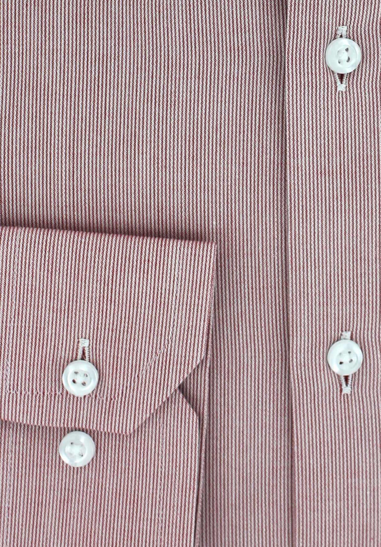 Men's slim fit shirt made of finely striped red cotton piqué . Its classic or French collar is made up of integrated stays to maintain its rigidity over time. Its long sleeves with adjustable button cuffs make it possible to adapt precisely to the width of the wrists. This shirt can be worn with or without a tie.
