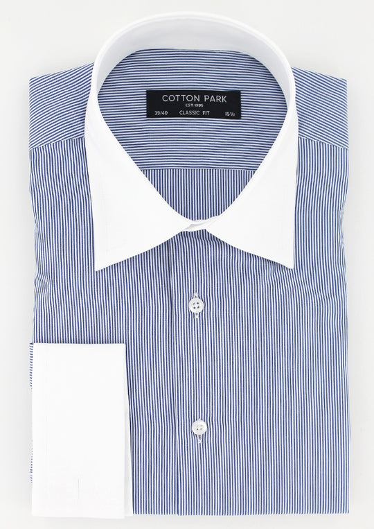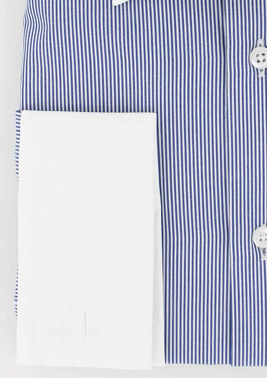 Chemise à rayures bleu marine poignets mousquetaires blancs