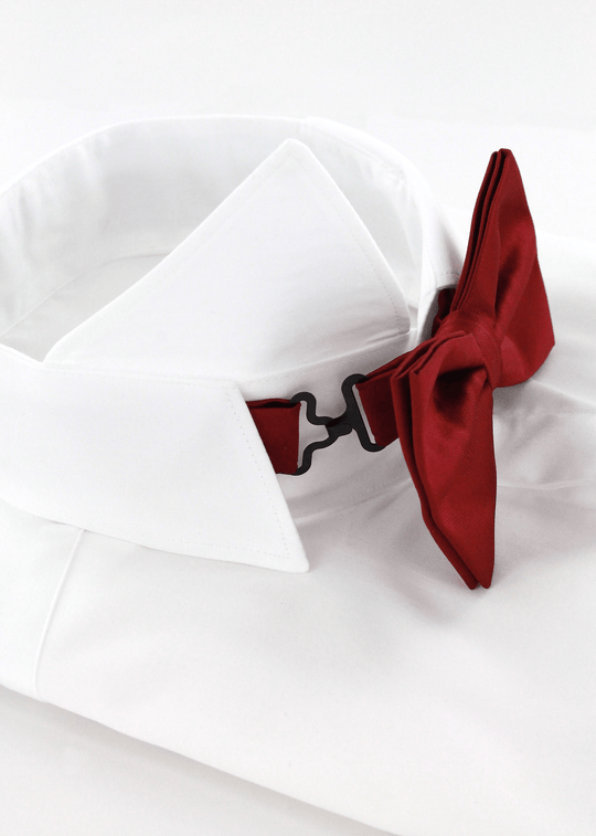Pre-tied plain red bow tie, adjustable thanks to a system of metal fasteners and sliding from size S to 3XL .