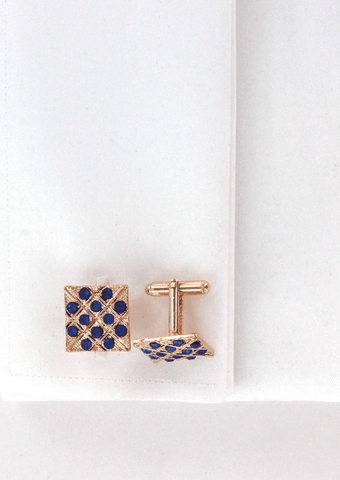 Cotton Park offers you top-of-the-range cufflinks with engraved gold diamonds with a nice touch of blue that can go with most of your ties and belts .