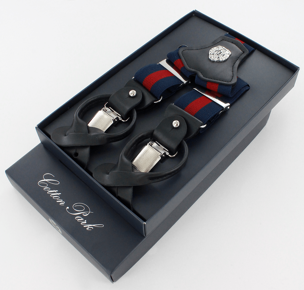 Bretelles homme bleu marine à rayure rouge | Cotton Park