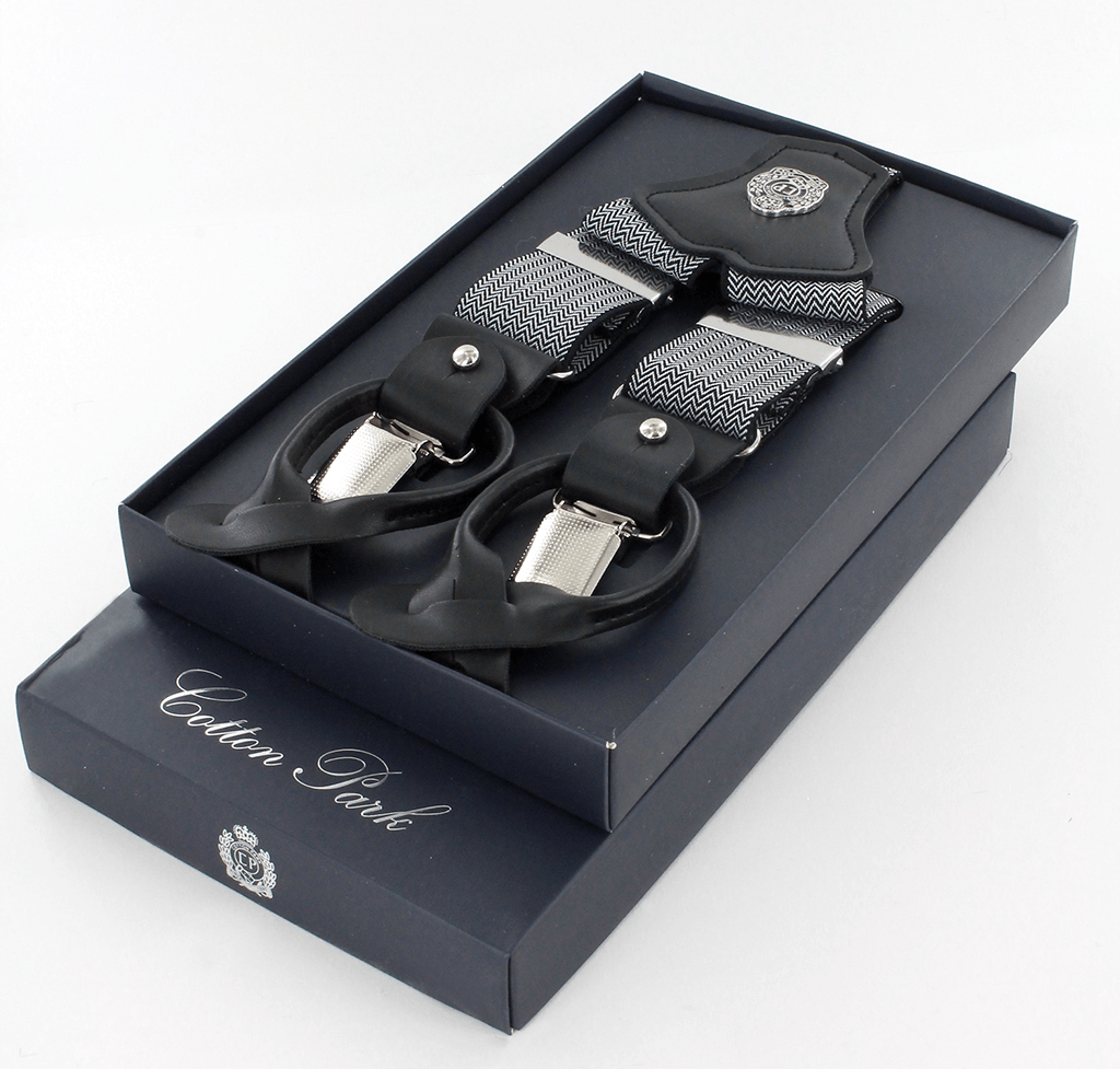 Bretelles homme noires à motif zig-zag | Cotton Park