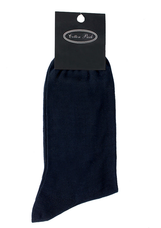 Navy blue ribbed socks for men in 100% cotton lisle thread. Seamless socks.