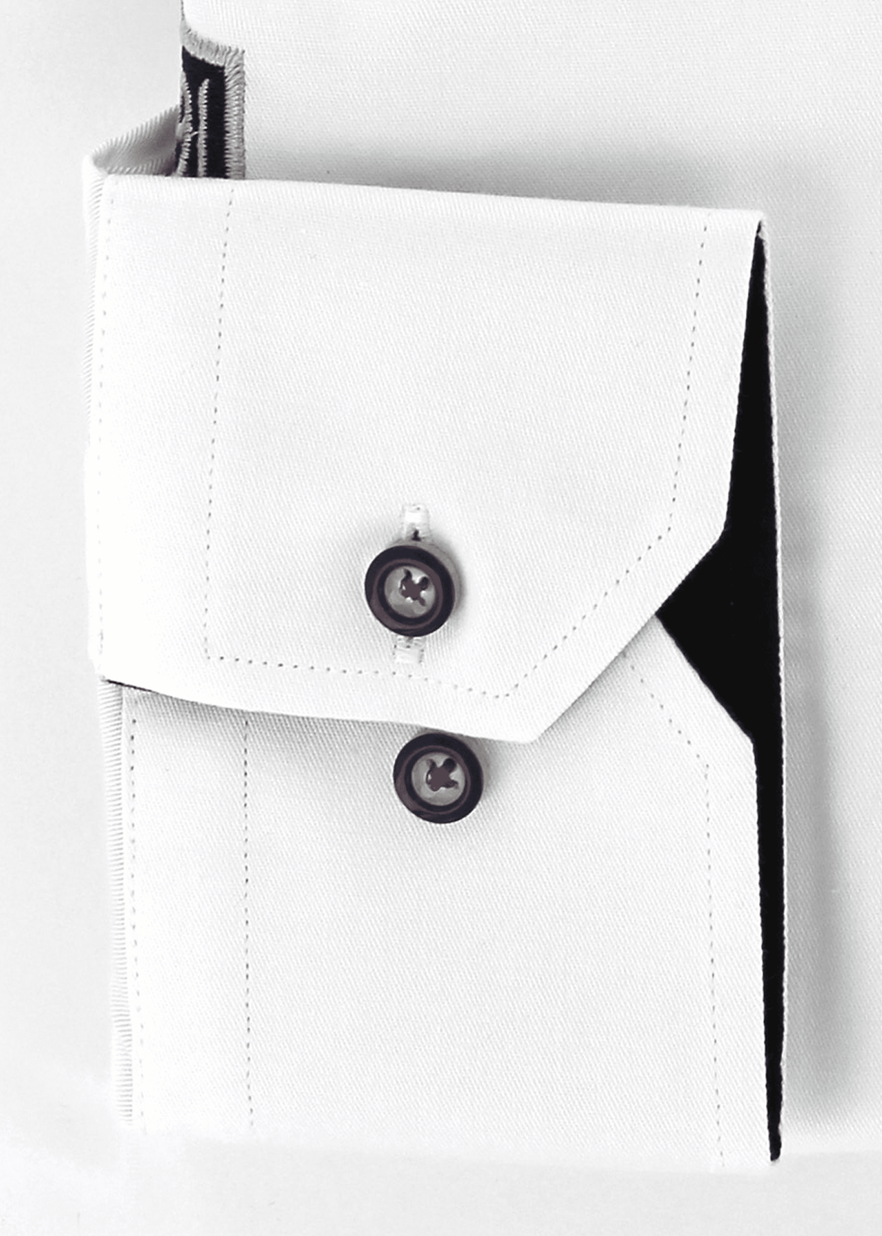 Inseparable from a contemporary look, this cut goes naturally with fitted suits and fine ties. The bending pliers preserve the latitude of a very free gesture, combining well-being and aesthetics. Without chest pocket. With adjustable single cuffs or French cuffs.