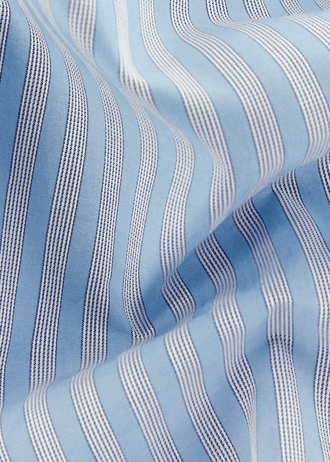 Chemise coupe droite pour homme en 100% coton de couleur bleu à rayures.