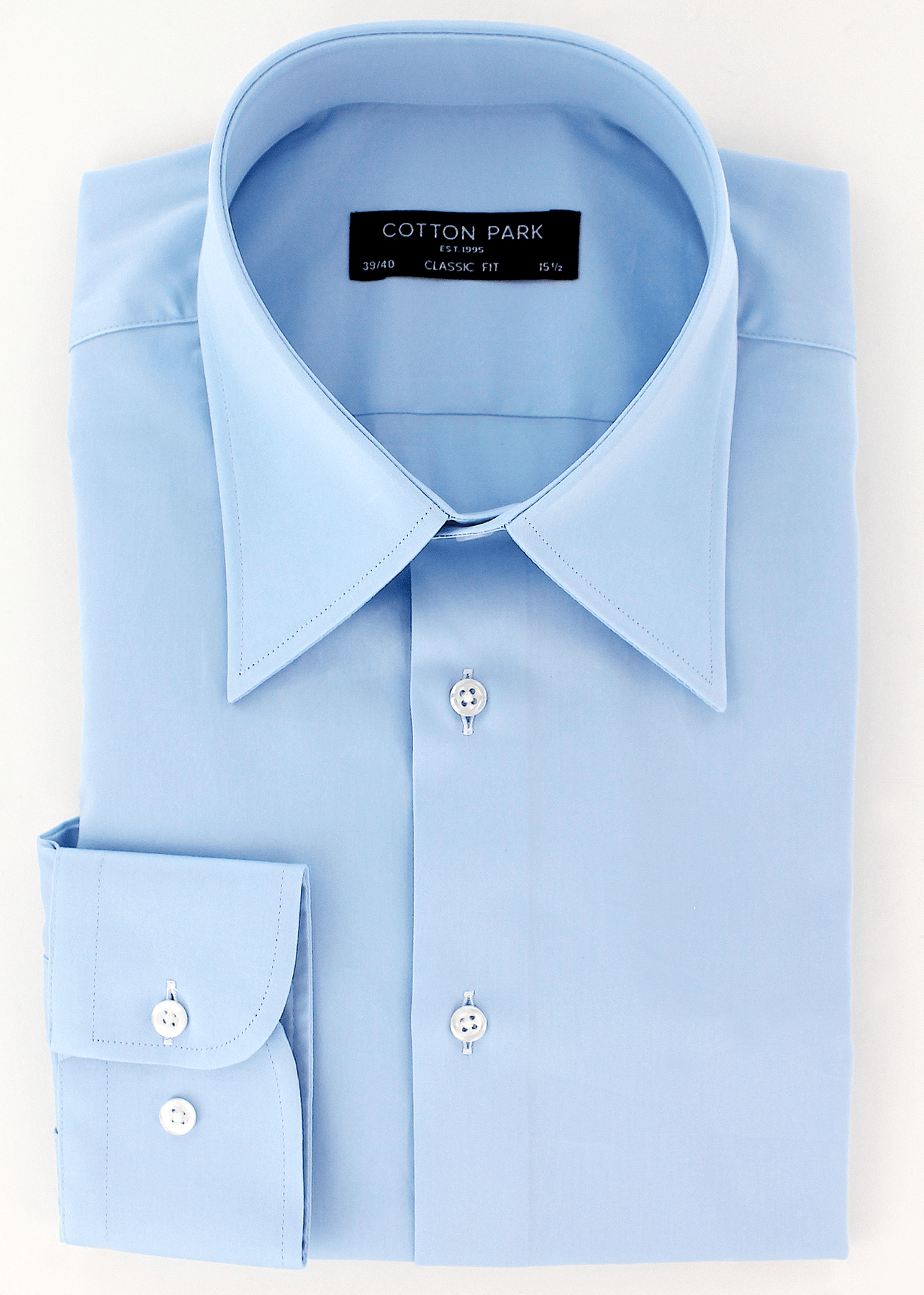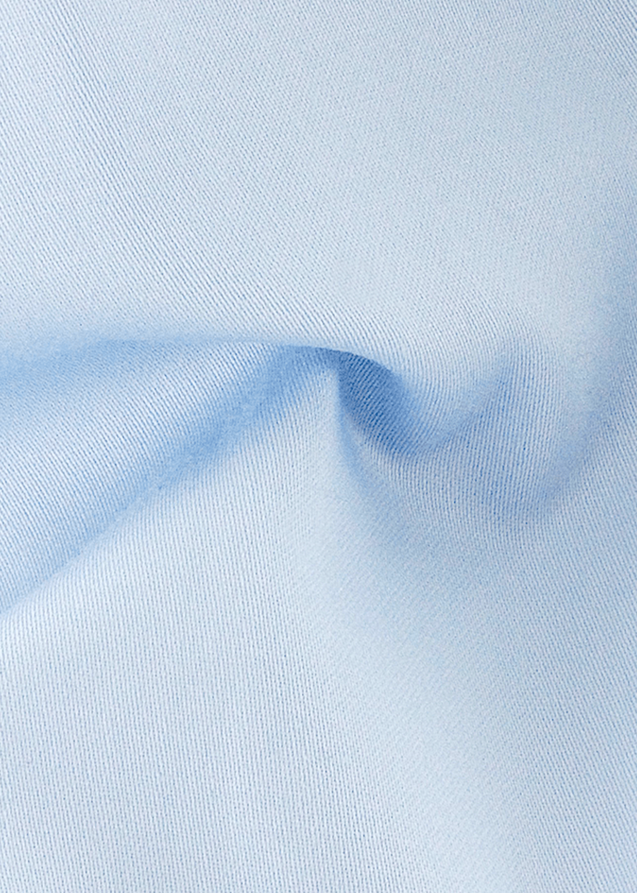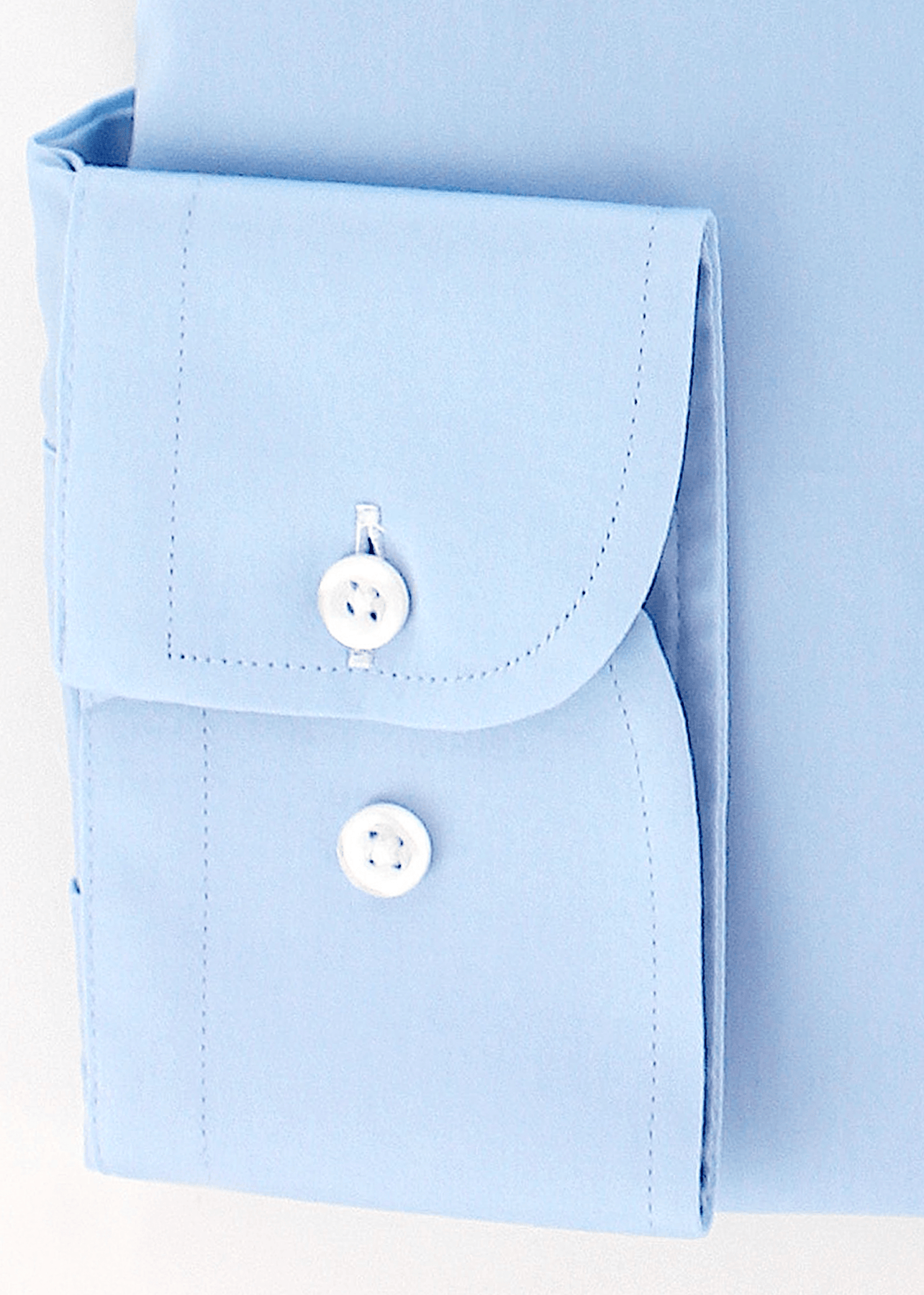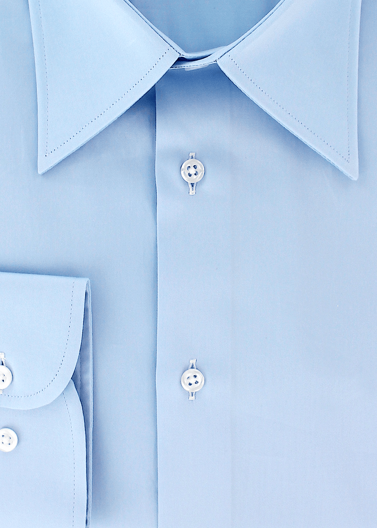 Chemise coupe droite pour homme fabriquée en satin de coton bleu ciel. Son col Napolitain est composé de baleines intégrées afin de conserver sa rigidité dans le temps. Ses manches longues avec poignets boutons réglables permettent de s'adapter avec précision à la largeur des poignets. Cette chemise peut se porter avec ou sans cravate.