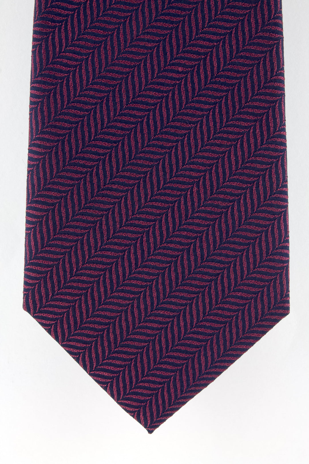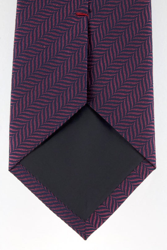 Cravate en soie tissée bordeaux motif chevron marine. Cotton Park d'une largeur de 8 cm. Nettoyage à sec.