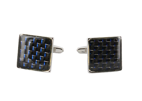 Boutons de manchette et plastron assortis couleur noire et bleu marine à motifs