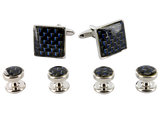 Ce coffret présente une paire de boutons de manchette et quatre boutons de plastron assortis de couleur noire et bleu marine à motifs. Si vous souhaitez apporter une touche d'élégance supplémentaire à votre tenue, ces boutons à la fois légers et robustes seront idéals.