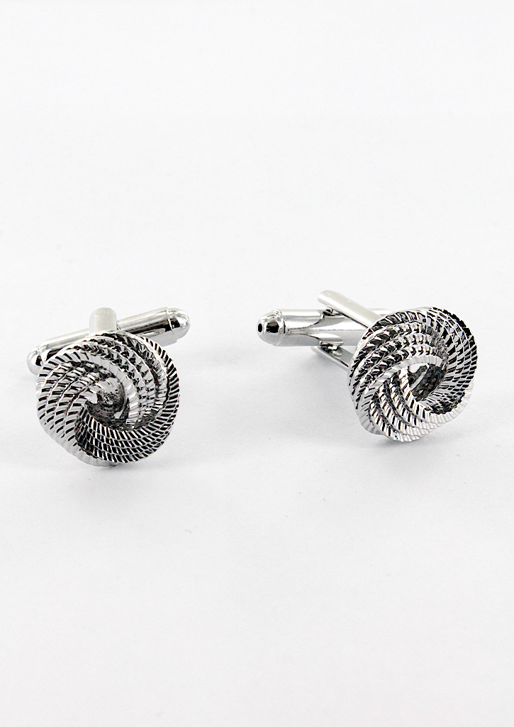 Ce coffret présente une paire de boutons de manchettes en forme de passementerie de couleur argent.