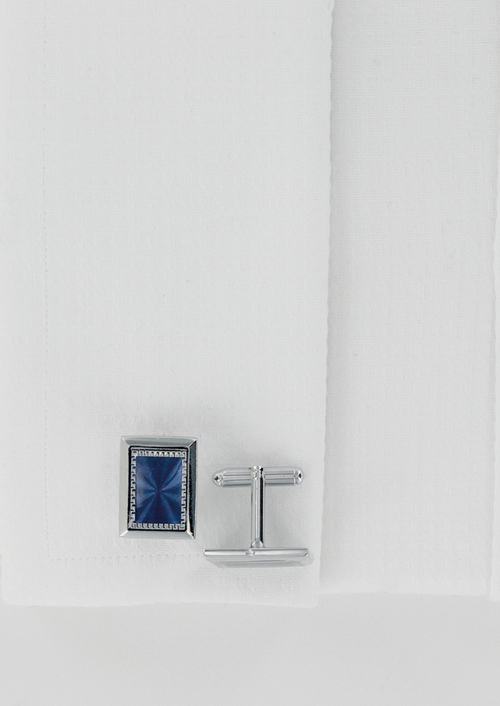 Boutons de manchettes rectangulaires couleur argenté à effet pierre bleu | Cotton Park