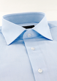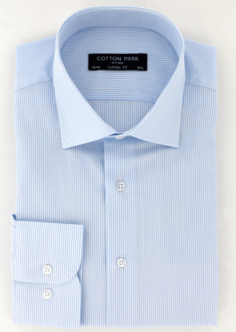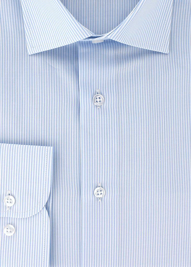 Explorez l'élégance discrète de notre chemise pour homme, confectionnée dans un luxueux coton à fines rayures bleu ciel. Sa coupe droite offre une silhouette raffinée, idéale pour toutes les occasions.