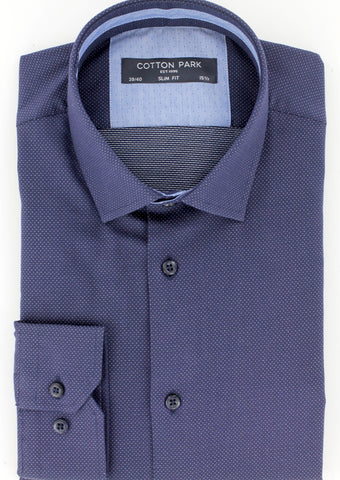 Chemise pour homme cintrée bleu marine à pois pour cérémonie | Cotton Park