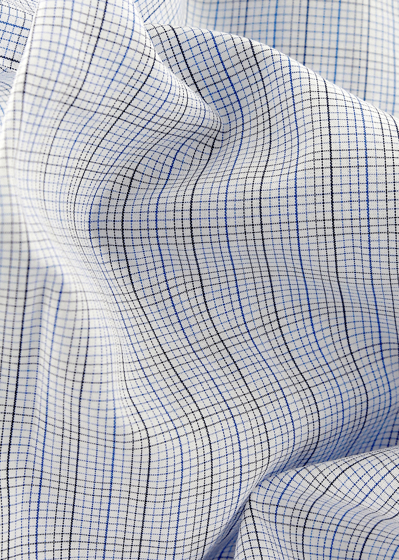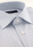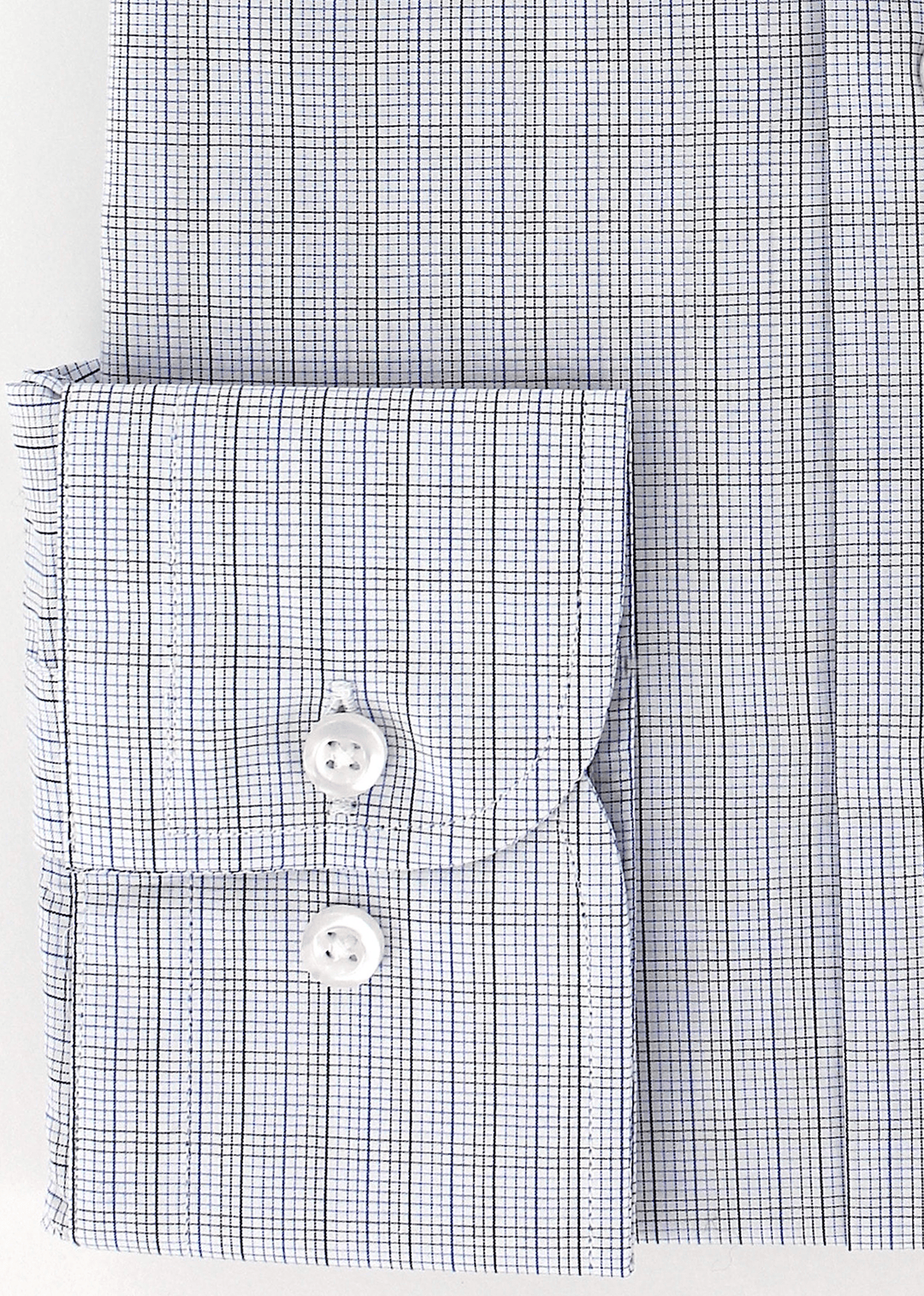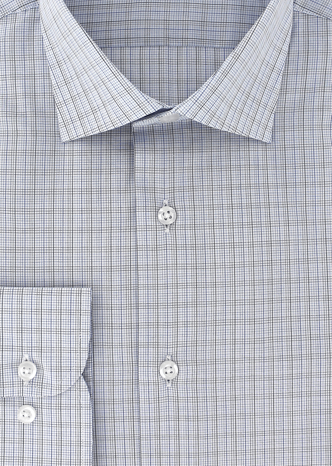 Chemise coupe droite pour homme en 100% coton à carreaux bleus. Cette chemise manches longues est doté d'un petit col italien et peut se porter avec ou sans cravate selon le style désiré.
