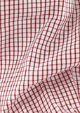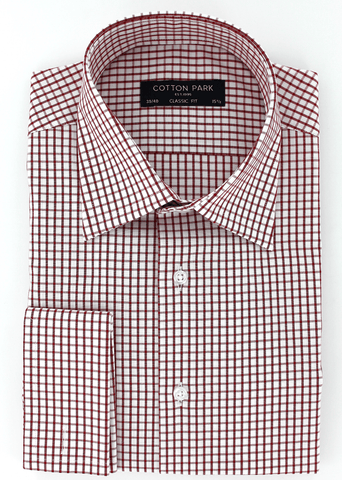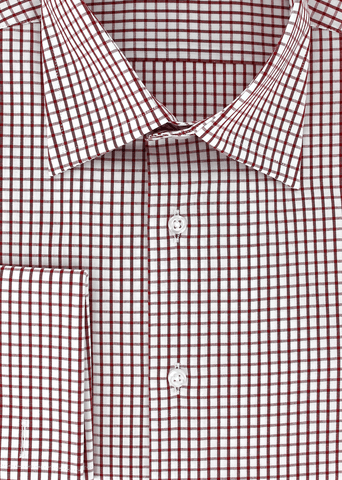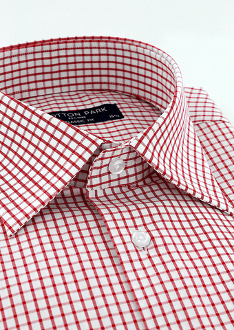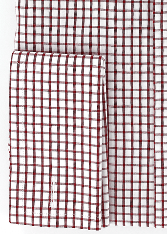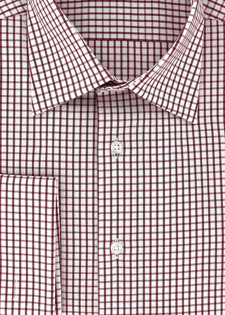 Chemise homme coupe classique en coton blanc et carreaux rouges. Cette chemise en 100% popeline de coton haut de gamme est proposée en col français, elle se portera avec ou sans cravate.