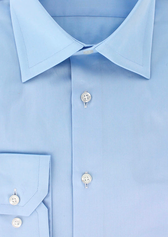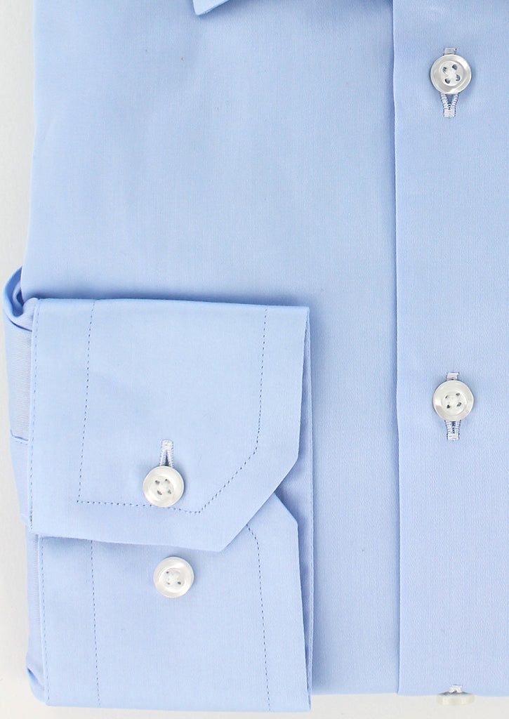 Chemise en satin de coton bleu ciel col français
