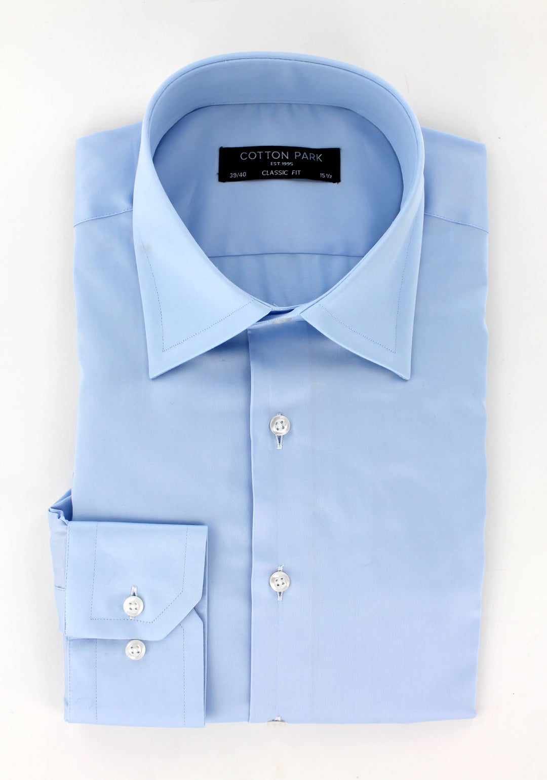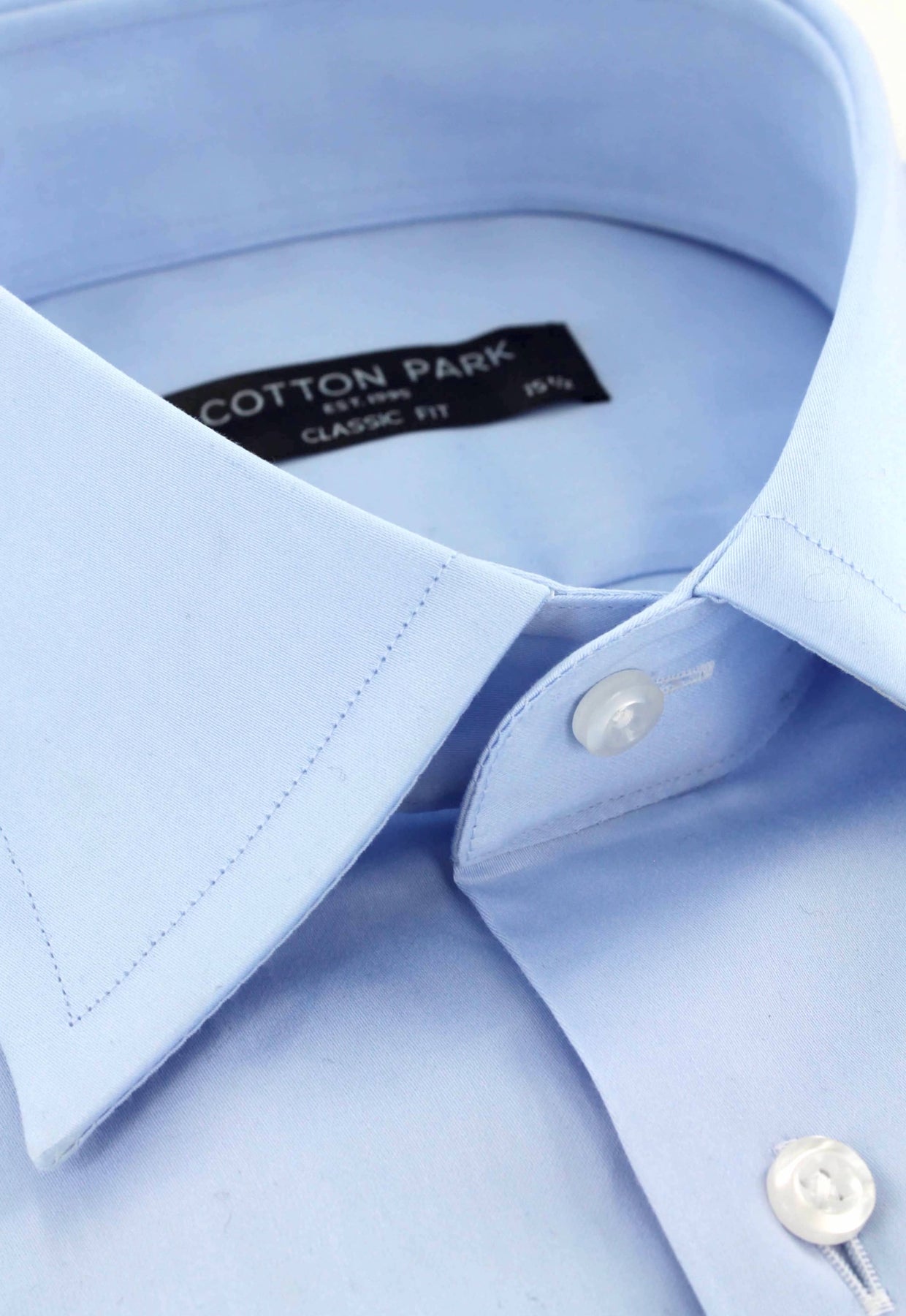 Chemise pour homme en satin de coton bleu ciel avec col classique | Cotton Park