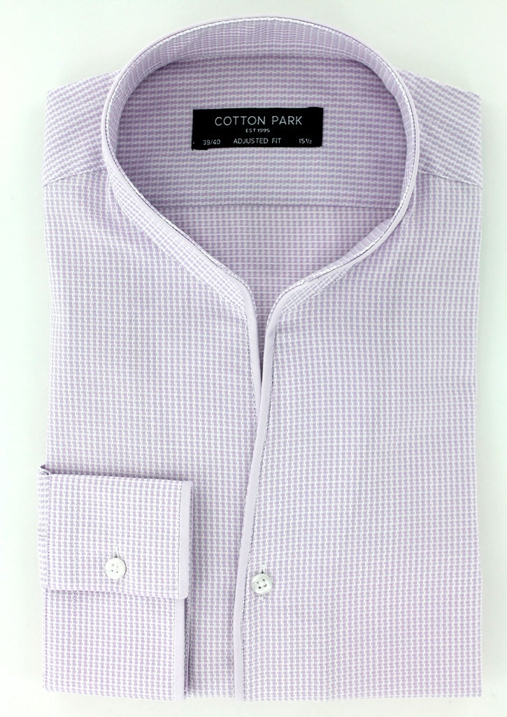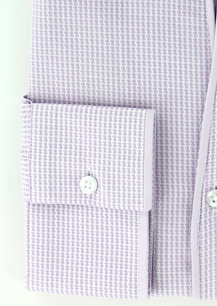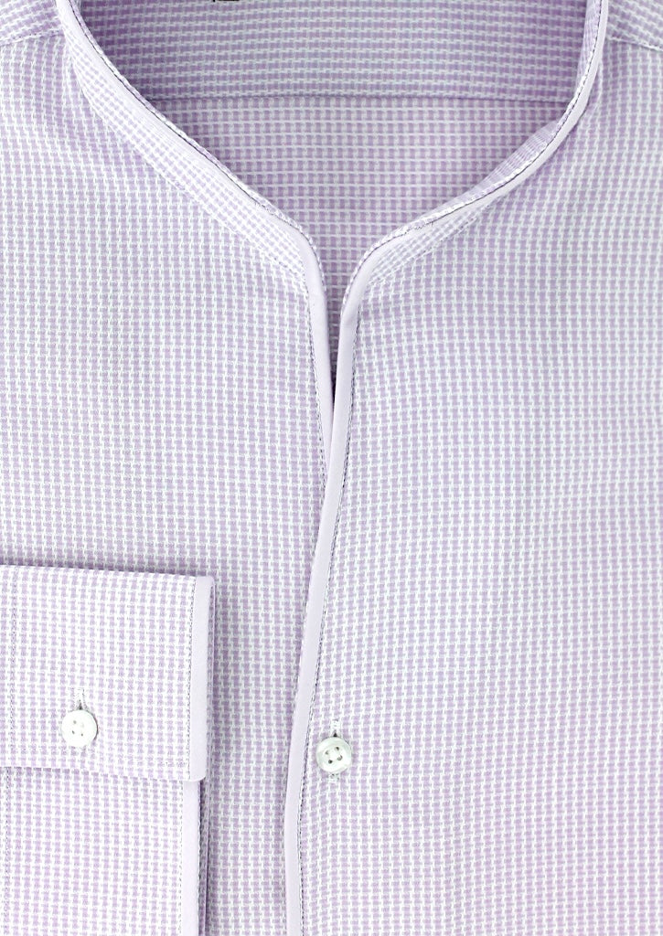 Cette chemise col indien coupe ajustée en coton parme à motifs possède un biais de couleur parme. Ses manches longues avec poignets boutons réglables permettent de s'adapter avec précision à la largeur des poignets.