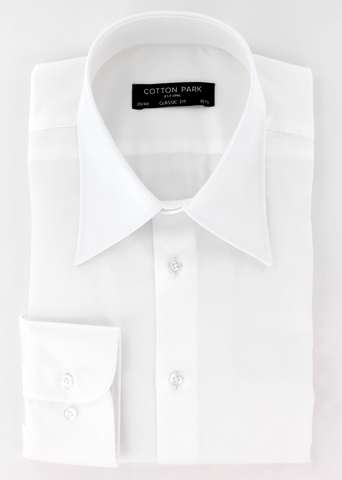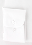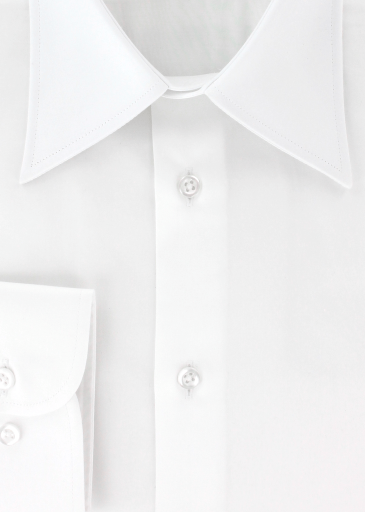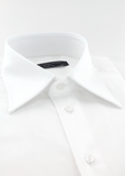 Chemise coupe droite pour homme fabriquée en satin de coton blanc. Son col napolitain est composé de baleines intégrées afin de conserver sa rigidité dans le temps. Ses manches longues avec poignets boutons réglables permettent de s'adapter avec précision à la largeur des poignets. Cette chemise peut se porter avec ou sans cravate.