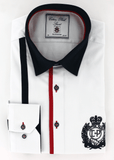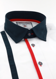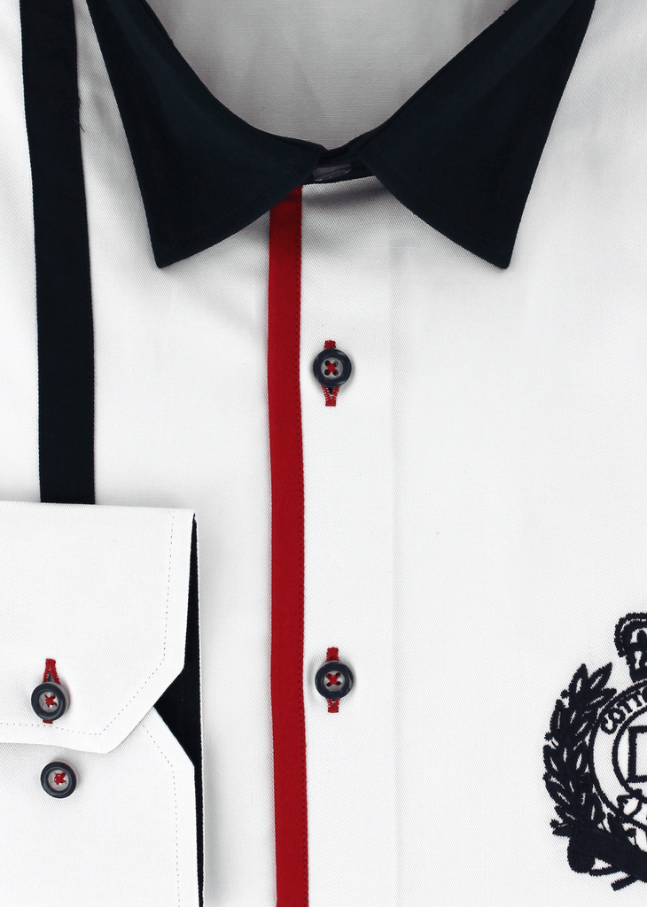 Cette chemise est le résultat d'un assemblage parfait de deux motifs comprenant l'uni blanc et rayures de couleur bleu et rouge. Les deux boutons présents au poignet vous permettront d'ajuster la taille de celui-ci au vôtre.