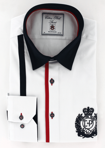 Poignets simples réglables blancs à opposition bleu marine | Cotton Park