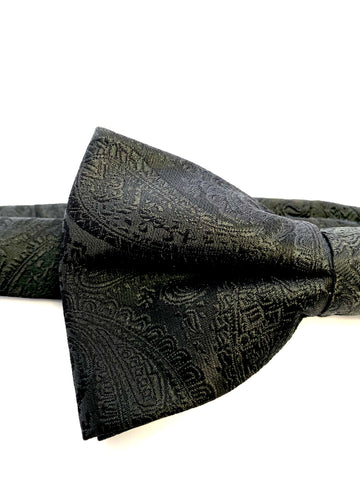 Nœud papillon pré-noué de couleur noir à motifs cachemire ton sur ton. Noeud Papillon ajustable grâce à un système d'attaches en métal et coulissant de la taille S à 3XL. Noeud papillon pour homme à porter sur une chemise col cassé Cotton Park