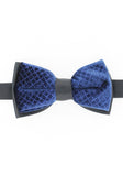 Noeud papillon velours bleu moyen motifs carrelés. Ajustable grâce à un système coulissant de la taille S à XL. Nettoyage à sec.