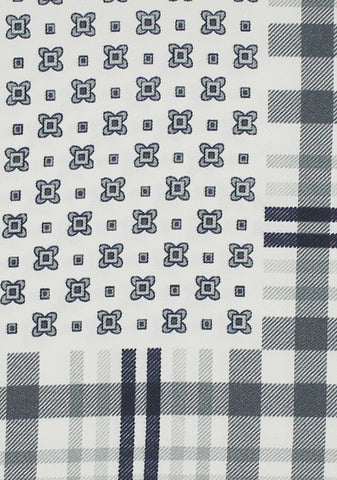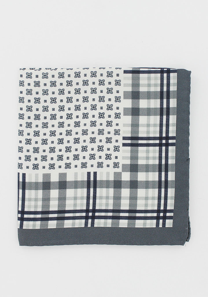 Pochette motifs carreaux gris en soie. Bord roulé cousu main. Pochette pour veste ou blazer. Nettoyage à sec. Fabriquée en Italie.