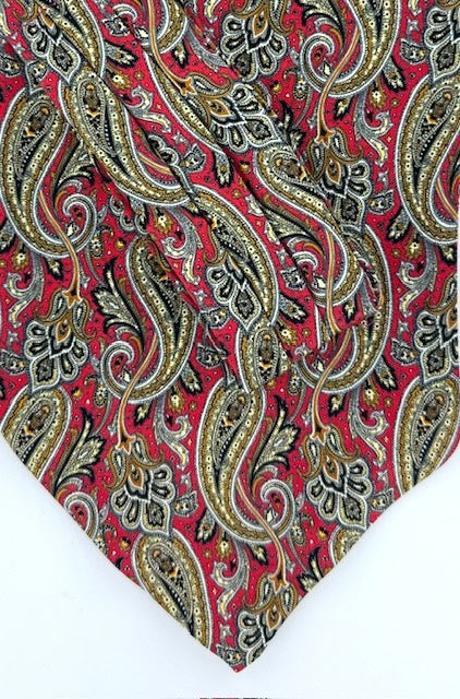 Ascot homme 100 % soie de couleur rouge à motifs paisley. Cet ascot de la marque Cotton Park est d'une largeur de 16 cm et d'une longueur de 136 cm.
