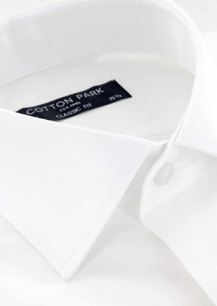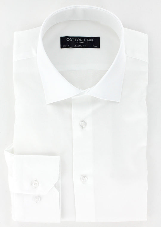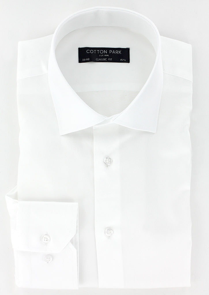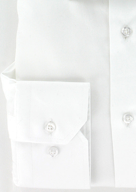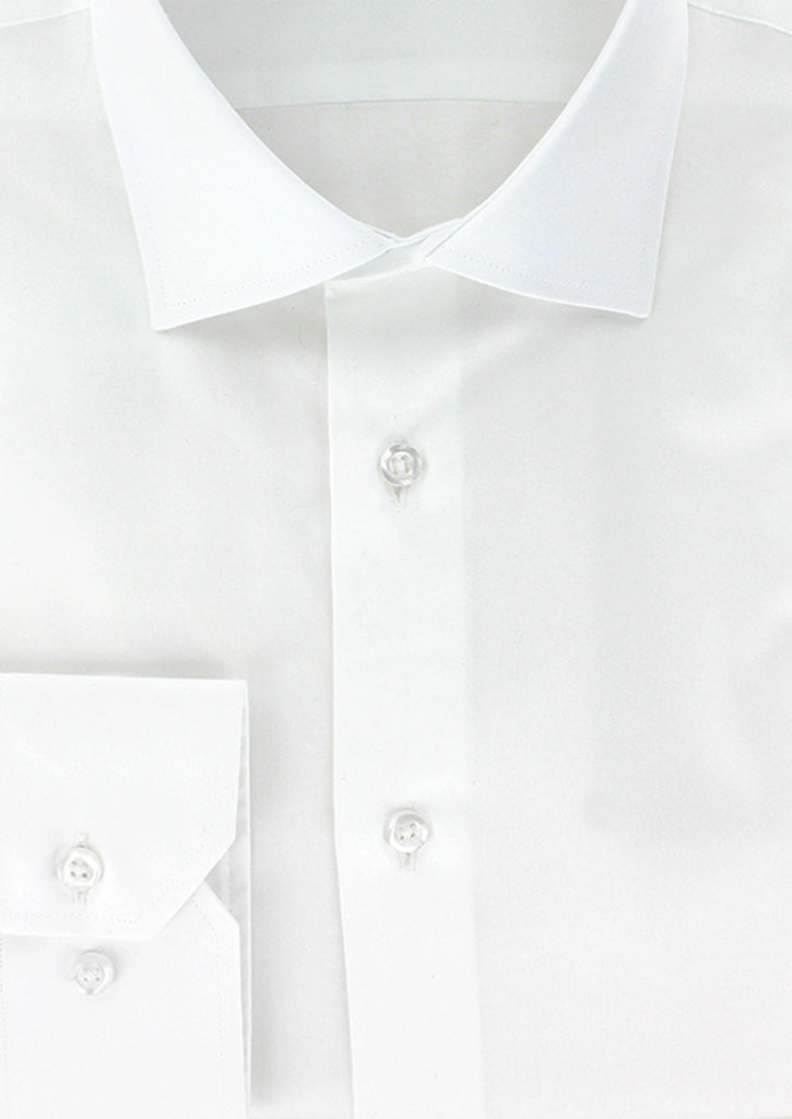 Chemise coupe droite pour homme fabriquée en satin de coton blanc. Son petit col italien est composé de baleines intégrées afin de conserver sa rigidité dans le temps. Ses manches longues avec poignets boutons réglables permettent de s'adapter avec précision à la largeur des poignets. Cette chemise peut se porter avec ou sans cravate.