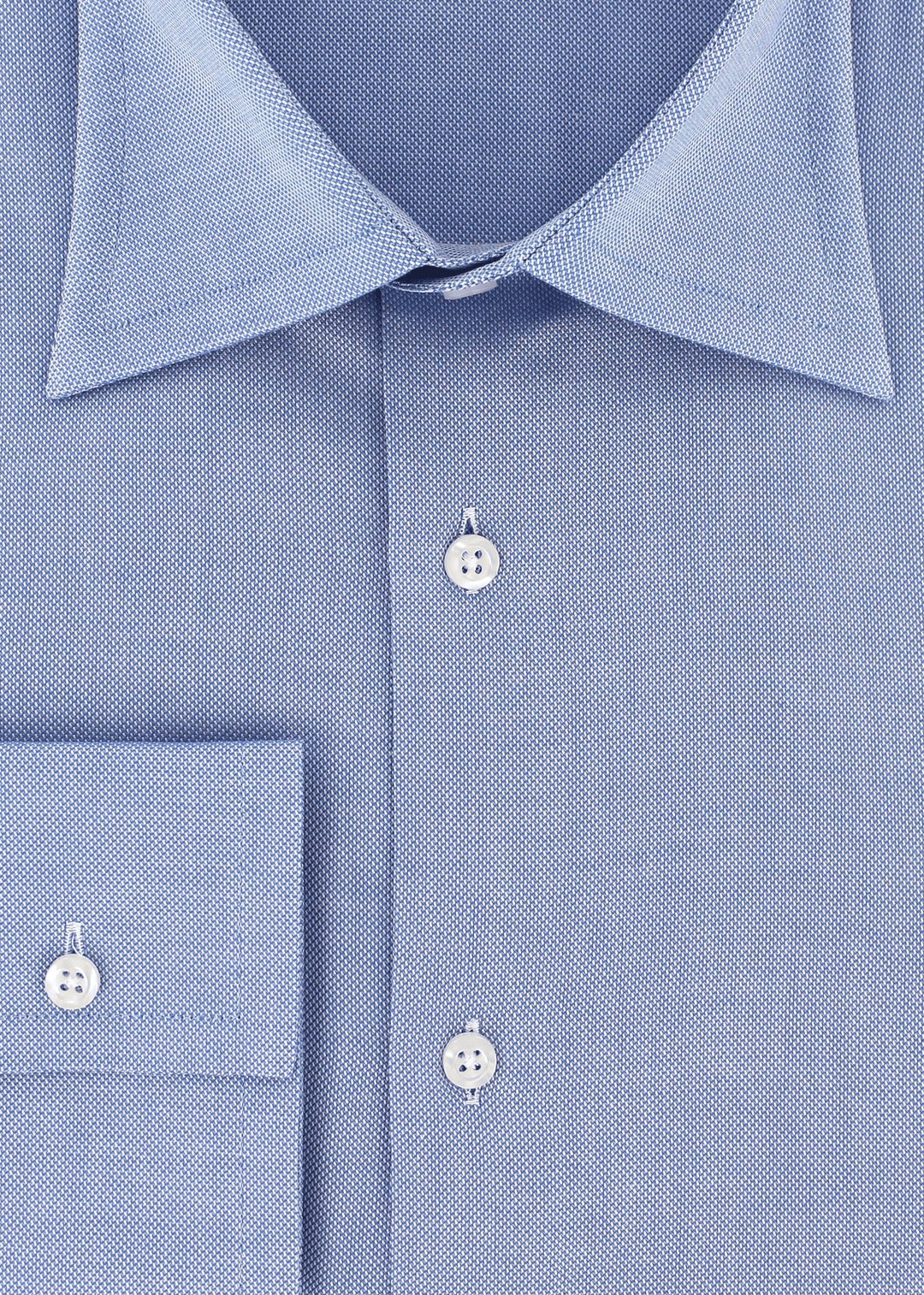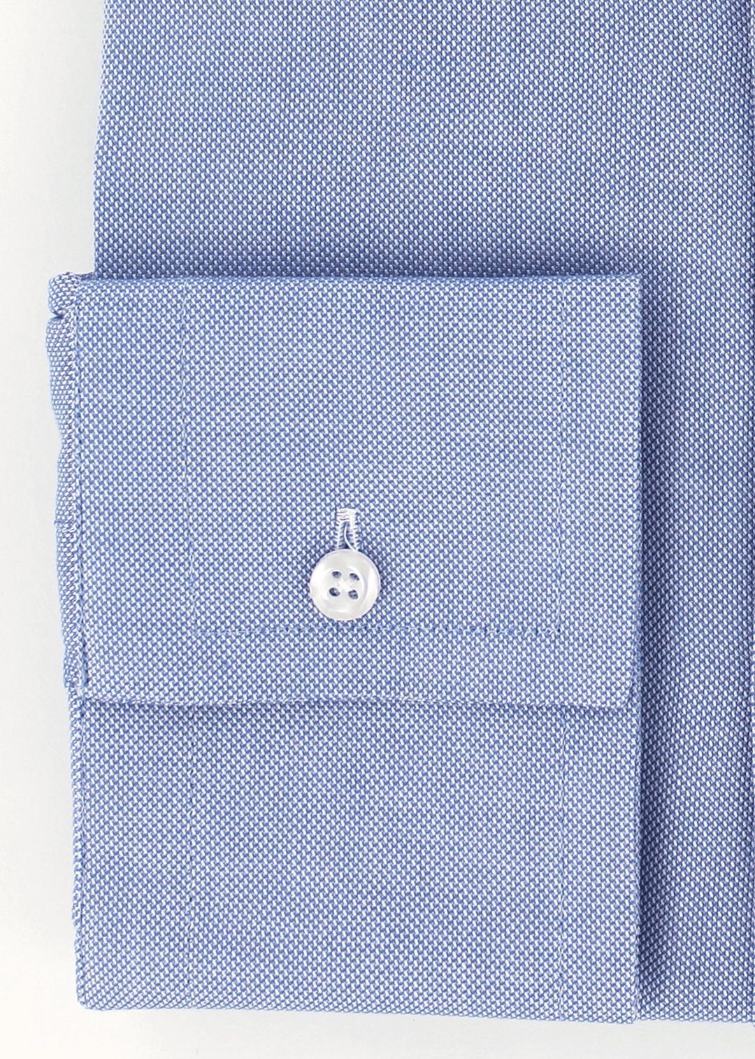 Chemise bleue natté coupe cintrée poignets transformables | Cotton Park
