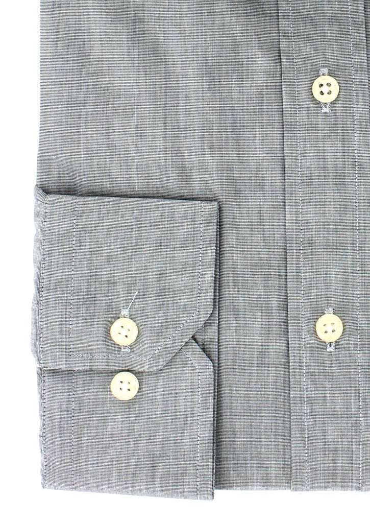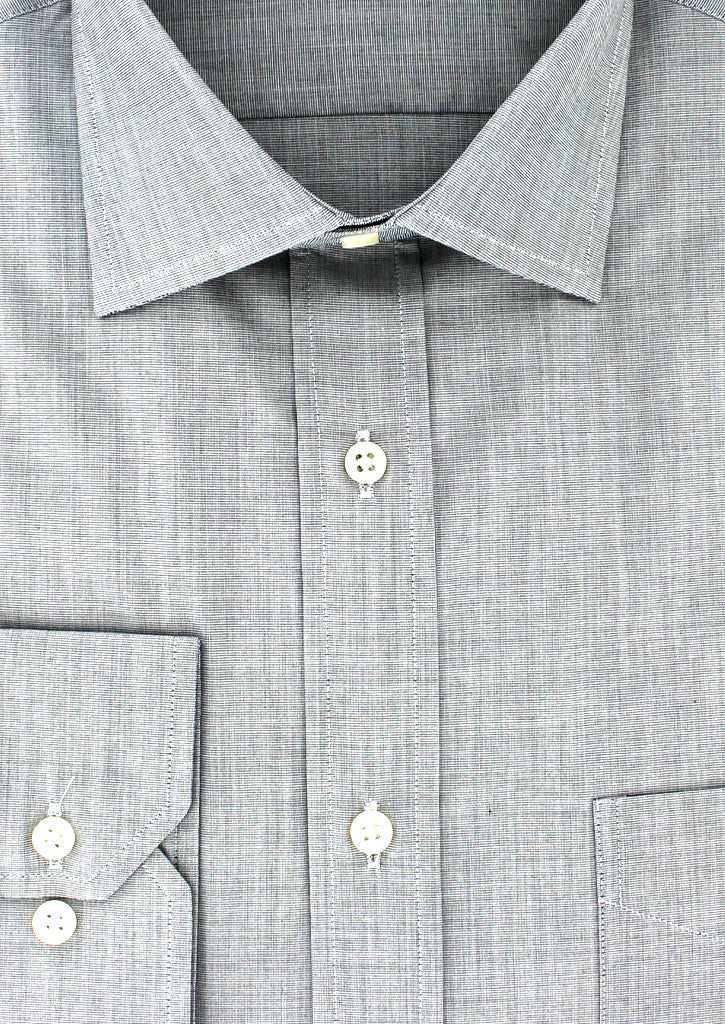 Chemise coupe droite pour homme en 100% coton gris fil à fil. Cette chemise manches longues est doté d'un col italien et peut se porter avec ou sans cravate selon le style désiré. Son col a été confectionné de sorte à conserver sa rigidité dans le temps grâce à des baleines collées et intégrées. Les deux boutons présents au poignet vous permettront d'ajuster la taille de celui-ci au vôtre.