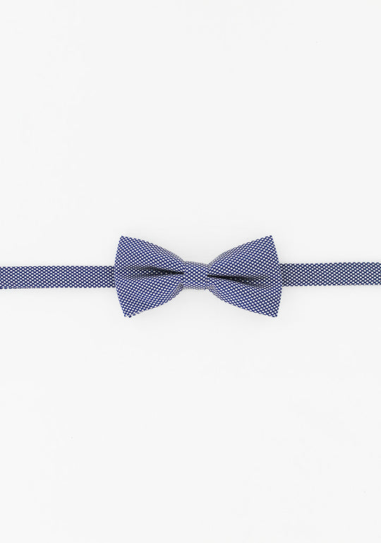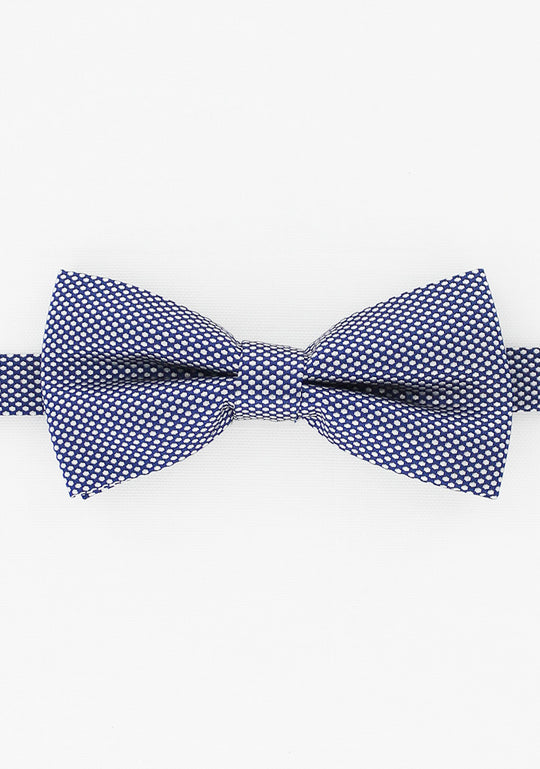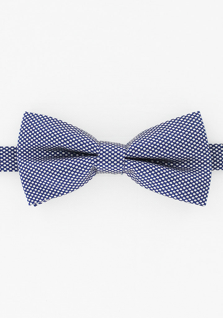 Noeud papillon marine et blanc, ajustable grâce à un système coulissant de la taille S à XL. Nettoyage à sec.